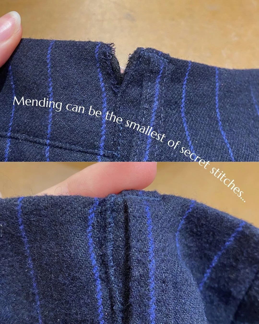 Working with you to thoughtfully and creatively mend your clothes, homewares and soft toys, so they can continue being worn, used and loved.